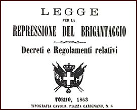 “Lo stato di brigantaggio è un stato a parte, uno stato sui generis: affinché cessi è mestieri ricorrere a provvisioni speciali”. (Deputato Giuseppe Massari)