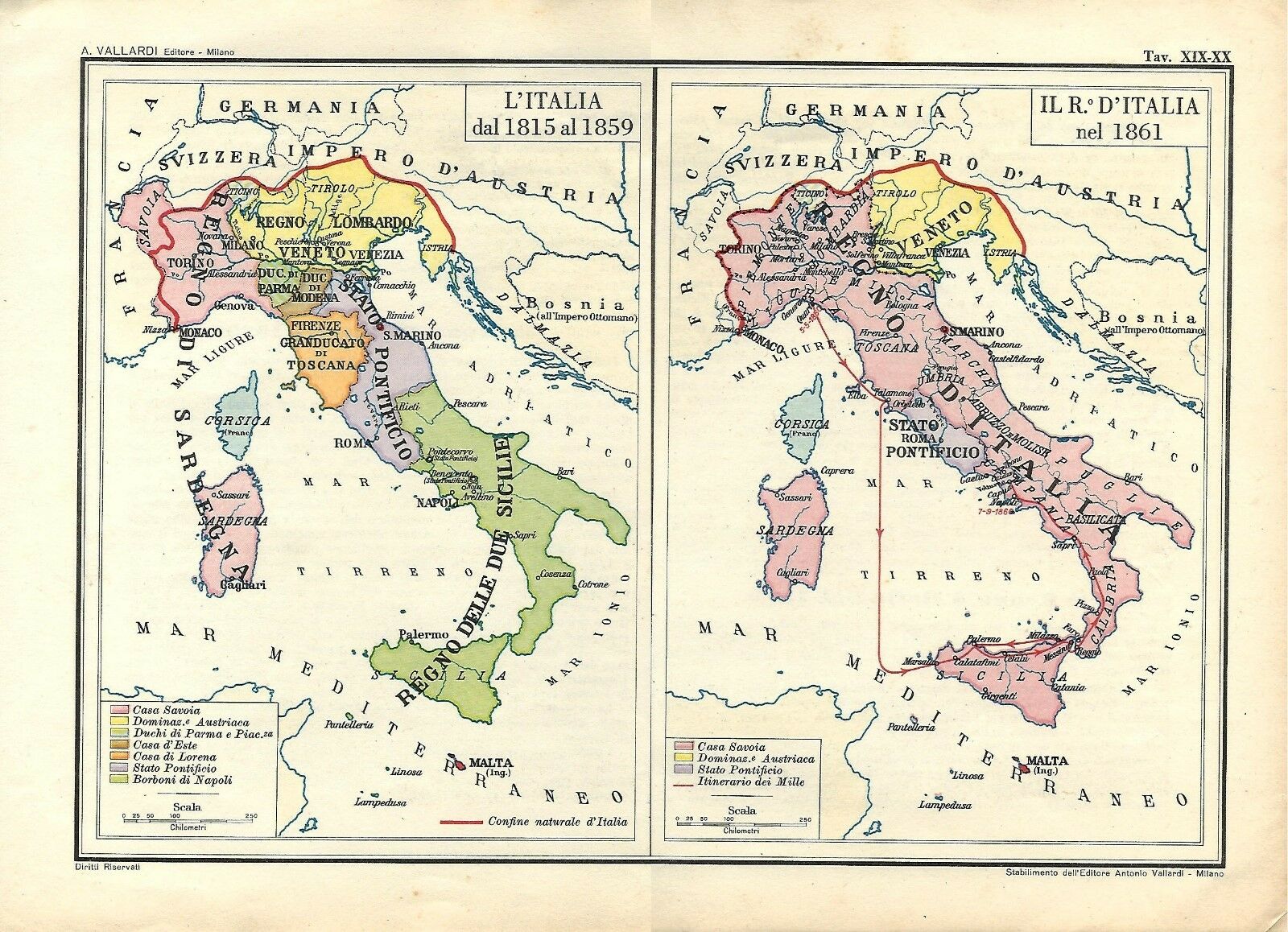 A meno di tre settimane dalla partenza da Quarto, nessuno poteva realisticamente credere a un’improvvisa quanto estemporanea spedizione a Nizza: in realtà tutto era già stato predisposto ed organizzato, per l’avventura nell’Italia Meridionale. Già la sera del 16 febbraio precedente, infatti, quasi tre mesi prima dello sbarco, il cavalier Martini, Ministro Plenipotenziario dell’Imperatore d’Austria a Napoli, riceveva un dispaccio telegrafico: “Una spedizione partirà prossimamente da Genova e da Livorno per Napoli.” Il largo anticipo e l’accurata precisione con cui il controspionaggio austriaco informava Napoli di quanto si stesse progettando in suo danno, fanno cadere ogni dubbio circa la veridicità dell’ipotetico sbarco in Costa -Azzurra. Nessuno, oltretutto, nemmeno l’Inghilterra poteva correre il rischio di uno scontro, anche se solo diplomatico, con la Francia , incoraggiando -attraverso i suoi agenti segreti – una missione palesemente improponibile. Se una qualsiasi azione ai danni della Francia fosse stata solo ipotizzabile, già da molto tempo gli acuti occhietti d’avvoltolo del Cavour avrebbero preso di mira la Corsica , isola che politicamente appartiene alla Francia ma che geograficamente è italiana, come fino a pochi lustri fa si leggeva nel libri di scuola.