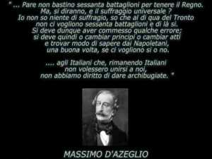 “Imporre l’Unità alla parte più corrotta. Sui mezzi non vi è dubbiezza: la forza morale e, se questa non bastasse, quella fisica”. (Camillo Benso Conte di Cavour)