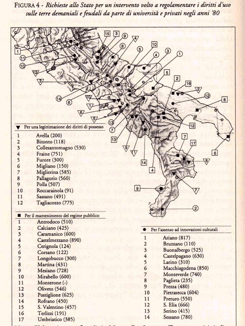 Il diritto napoletano introdusse una netta distinzione nella “publica civitatum” (proprietà pubblica). Furono chiamati “patrimoniali” i beni che la Pubblica Amministrazione possedeva come propria dotazione (immobili, navi da guerra, ambasciate, ecc); “demaniali” i beni pubblici, disponibili all’uso immediato della collettività nazionale (boschi, strade, fiumi, ecc). Il termine “demanium”, di derivazione medioevale (indicava i beni posseduti dal nobile, in quanto tale, per esprimere lo splendore della sua dignità), nella giurisprudenza napoletana (sviluppatasi fin dal XVI secolo), venne quindi a significare “terra libera”. Furono detti demani universali quelli statali/comunali, la cui proprietà e l’uso appartenevano a ogni singolo cittadino; demani feudali quelli derivanti dalle proprietà conferite alla nobiltà per l’esercizio delle proprie funzioni. L’istituto degli “Usi Civici” del Regno delle Due Sicilie, garantiva il libero uso per tutti i cittadini delle terre del demanio per piantare, coltivare, pascolare greggi, far legna nei boschi. La giurisprudenza degli Usi Civici è tutta propria del Diritto Napoletano ed è ritenuto una gloria del diritto italiano, per il suo carattere liberale che la differenziava di gran lunga da quelle di Francia e Germania. A seguito dell’invasione napoleonica, insediatosi sul trono Gioacchino Murat, fu promulgata il 2 agosto 1806 la legge per abolire la feudalità, ma non gli usi civici: le popolazioni conservarono tutti i diritti. Il 20 settembre 1836 Ferdinando II di Borbone, riconfermò gli Usi Civici con una “Prammatica” in cui si affermava: “… Doversi presumere usurpato in danno del demanio comunale tutto quel territorio che non si trovasse compreso nel titolo d’infeudazione;” [si doveva cioè considerare occupato abusivamente dai feudatari (e/o dai municipi) tutto il terreno non espressamente patrimoniale); “di doversi considerare come libera ogni terra posseduta dai privati o dai Comuni, finché non si fosse dal feudatario giustificata una servitù costituita con pubblici istrumenti; (si noti che è il feudatario, nobile o municipio, a dover dimostrare la proprietà della terra e non il colono o chi la coltivava gratuitamente per se). “di doversi consolidare la proprietà dell’erbe e quella della semina, compensando l’ex feudatario mediante un canone redimibile ove apparisse aver egli riserbato il pascolo in suo favore. (Anche quest’altro passaggio è significativo: nel caso si fosse dimostrato che il colono coltivava terre non libere il “feudatario” non poteva scacciare coloro che le avevano coltivate impossessandosi del raccolto e delle “erbe” ma poteva solo pretendere il pagamento d’un affitto. La legge, in tal modo, salvaguardava il lavoro dei contadini e impediva che venissero privati, d’un botto, dei mezzi di sussistenza. Nel Diritto Napoletano la salvaguardia dei diritti dei più deboli era un principio ispiratore); “di doversi considerare come inamovibili quei coloni che per un decennio avessero coltivate le terre feudali, ecclesiastiche o comunali, e come assoluti proprietari delle terre coloniche sulle quali è loro accordata la pienezza del dominio e della proprietà senza poter essere mai tenuti a una doppia prestazione…” (cioè i coloni che per un decennio avessero coltivato terreni patrimoniali di feudatari, enti religiosi o municipi non potevano essere rimossi, scacciati o costretti a prestazioni servili e dovevano esserne considerati come legittimi proprietari). Nel 1860 giunsero i piemontesi e la “festa” finì: i terreni demaniali furono venduti ai privati, per rastrellare il risparmio del Sud e trasferirlo altrove. Si crearono nel contempo improduttivi latifondi. Terre, boschi, pascoli e frutteti finirono in mano ai liberali borghesi non “compromessi” con i Borbone. Migliaia di famiglie finirono, dall’oggi al domani, alla fame, senza più alcun sostentamento. Iniziò la più grande diaspora della storia italiana: quella meridionale, che ha costituito, e continua a costituire, una risorsa enorme per le casse erariali italiane e una fonte di manodopera a basso prezzo per il nord. Perciò è sempre fomentata. Ma questa è un’altra storia!
