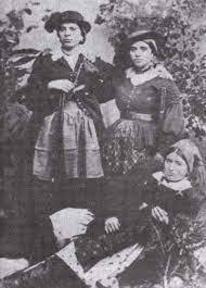 Brigantessa Maria Rosa Marinelli Donne che, per forza, per amore o per convinzione, sparirono nei boschi, e, vestite da uomo, imbracciarono uno schioppo entrando direttamente in azione contro gli invasori, difendendo il Sud: queste sono le brigantesse. E’ chiaro che queste donne erano sopratutto drude delle fiancheggiatrici che hanno voluto o dovuto commettere atti violenti. La prima brigantessa della storia fu Francesca La Gamba di Palmi docile “filandara” finchè non le uccisero i figli durante il periodo francese. Donna avvenente dovette divenire una sorta di Erinni per vendicarsi. Suscitò le mire di un ufficiale francese, che, forte della sua divisa e del suo potere, non esitò a farle delle avances, e tentò di sedurla. Ma la donna, fiera e fedele al legame maritale, respinse l’uomo, che, ferito nell’orgoglio, progettò un’atroce vendetta, facendo affiggere un falso manifesto di incitamento alla rivolta contro l’esercito francese. Colpevoli di questo strano manifesto i figli della donna i quali erano davvero estranei ma vennero fucilati. Divenne una brigantessa perchè pazza di dolore! Francesca fu l’unica donna brigantessa del periodo francese. Anche se i briganti scorrazzavano ovunque, dalla Sardegna al Lombardo-Veneto, l’epicentro del fenomeno, che conobbe picchi di recrudescenza dopo l’insurrezione di Isernia (30.09.1860) e dopo la crisi di Aspromonte (29.09.1862), fu al Sud, perché nell’incontro tra Nord e Sud il trauma del regno duosiciliano fu il più lacerante e profondo. Il nuovo Stato non rispettò la divisione delle terre i poveri continuavano a lavorare la terra per i galantuomini. La guerra cafona che si aspettava, si manifestò però con la virulenta depressione. Dopo lo scioglimento dell’esercito borbonico, gli ex soldati si trovarono allo sbando, e i giovani persero una possibilità di sbocco occupazionale, con il risultato che si ingrossarono le schiere di soldati senza esercito e di mancati soldati, aggravando la crisi socio-economica. Non mancarono le nuove chiamate alle armi dello Stato Italiano che toglieva braccia alle campagne. Oltre ai disordini, la diserzione divenne una grave colpa! Molti erano consapevolmente renitenti alla leva, e, a conti fatti, alla morte in battaglia preferirono la “fatìa” dei campi, loro fonte di sostentamento. Soldati borbonici, sudditi, cafoni e veri briganti finirono nello stesso “calderone” per punire i miscredenti Piemontesi alle direttive di un Re coi baffoni straniero. Inizia una guerra i briganti mettono in difficoltà i piemontesi che cadono nelle imboscate in territori impervi. Torniamo alla brigantesse risulta la più famosa Michelina De’ Cesare della Terra di Lavoro morta in combattimento. Il suo cadavere denudato fu esposto con quello del suo compagno Francesco Guerra, ex soldato borbonico, nella piazza centrale di Mignano (Caserta) a monito della popolazione, per intimidirla. Lo Stato Italiano impiegò 10 anni per debellare le 400 bande. Donne che hanno visto crollare il mondo, perdita dei cari dell’amore e magari anche la verginità e volenti o nolenti costrette a vivere come uomini. Altra donne calabrese dedita alla ferocia fu Maria Oliverio detta “Ciccilla” uccise per gelosia la sorella rea di aver sedotto il brigante Monaco. Una vera brigantessa macchiata di omicidio! Dopo la morte di Pietro il potere passò a lei distinguendosi per ferocia, la stessa che dimostrò con la sorella. Altra donna crudele fu la druda di Ninco Nanco, Marianna Corfù condivideva con lui solo “le gioie del talamo”. La meno giovane era la lucana Arcangela Cutugno, nota e temuta come guerriera abile a cavallo e a tirare di schioppo. Non può mancare la Pennacchio per il vezzo di portare in cappello piumato. Fu uxoricida uccidendo il marito con uno spillone in gola, causa della sua fuga divenne l’amante di Caruso, Crocco e Schiavone. Intrepida combattente, e uxoricida partecipò all’eccidio di una decina di soldati a Sferracavallo, sulla consolare. Diversi tribunali, tra Potenza, Avellino e Lucera, testimoniano numerosi capi d’accusa, dall’estorsione all’omicidio volontario. Insomma non erano delle sante! Donne che dopo aver commesso delitti per forza maggiore erano complici, oltre a nascondere i ricercati e a curarli, li coccolavano procurando loro persino il tabacco da fiuto. Diversa situazione le fiancheggiatrici erano delle ammiratrici che uscivano di notte per portare viveri, cure ai feriti ed amore. C’era anche e sopratutto la cupidigia maschile, la voglia di soddisfare i propri istinti, e quindi la caccia a donne giovani e piacenti era sempre aperta, per le strade di campagna, nei casolari, persino in paese. Esempio di brigantessa per forza Maria Giantommaso di Rotello (CB), rapita a 19 anni dopo una giornata di lavoro nei campi, dalla banda Caruso. La donna di brigante “per forza” più popolare del Molise è indubbiamente Filomena Ciccaglione di Riccia (CB) la quale approfittava del suo ascendente per intercedere presso il brigante innamorato e far cessare incendi, rapimenti, ruberie. La Ruscitti sua amante per volontà invece seguì Caruso perchè ammaliata. Il 18 agosto 1863, in uno scontro con una colonna di bersaglieri e Guardie nazionali, in cui morirono sette briganti, Maria Luisa fu catturata e condannata a 25 anni. Quando uscì di galera, nel 1888, aveva 44 anni, era quindi ancora giovane, ma ormai la sua vita era finita. Altra affascinata dalla figura dei briganti fu Marta Cecchino di Roccamandolfi (IS). Amante del brigante Samuele Cimino faceva la corriera dei briganti insomma per il fratello affiliato, rimase con loro! Lì alla macchia si mangiava e si beveva, altro che casa sua. La miseria era alle spalle, lei e gli altri mangiavano meglio degli odiati galantuomini: caciocavalli, prosciutti, uova, lardo, carne, ogni bendiddio razziato a destra e a manca. Sul capo di AngeloAntonio Masini, venne messa una taglia che in poco tempo lievitò a Lire 20.000 (ventimila),